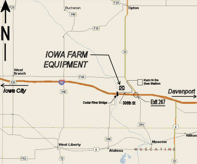 Store Location & Mailing Address 1249 306th St. Tipton, Iowa 52772 sales@iowafarmequipment.com 563-946-2121